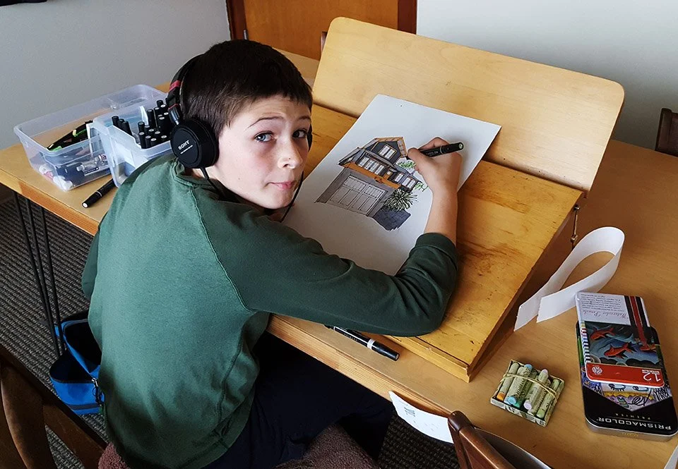 This is the first year that Gusto actually had a place to Take-Your-Child-to-Work to. And Nico actually had a good time working with us. He pretended to be the lead designer rendering a copy of an old presentation. His color selection was pretty sharp. We were happy to have the good company today.